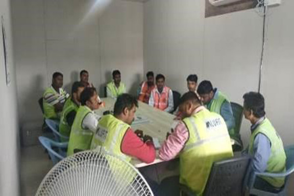 Safety briefing prior to work commencement every morning